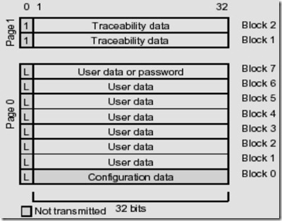 頁1有兩個塊,數據只能為讀,包含卡號信息和制造商的一些信息,具體格式含義見T5557芯片資料。