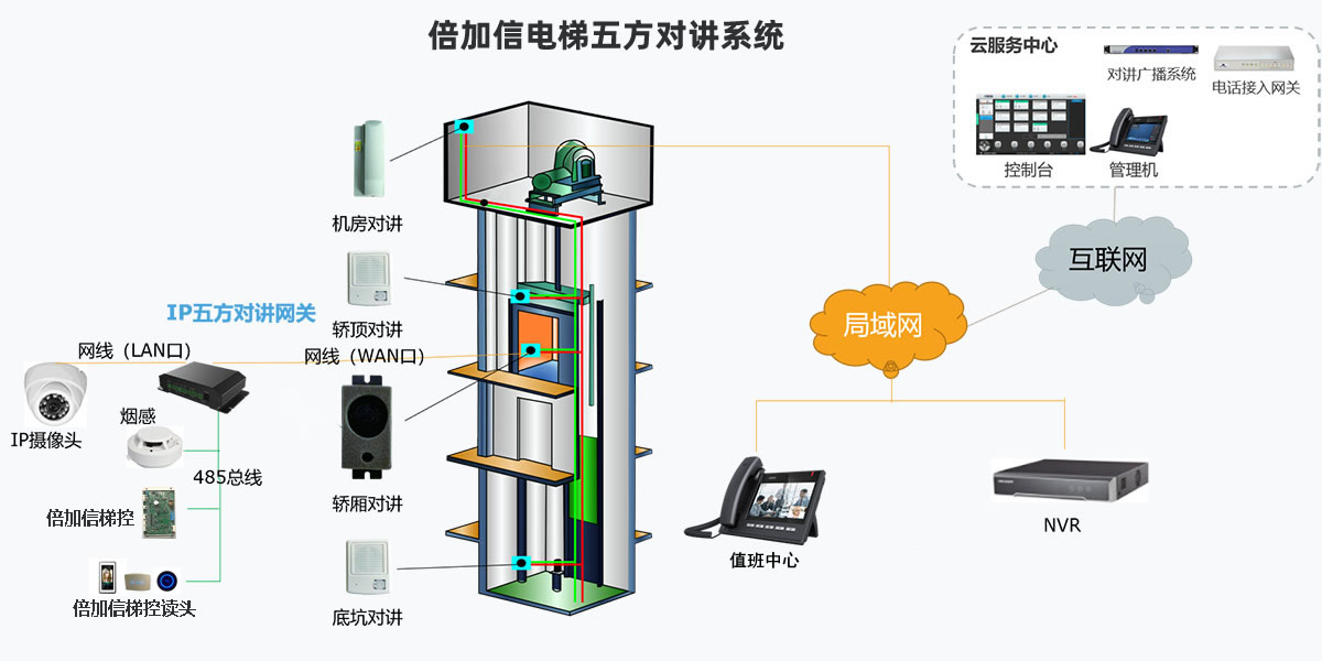五方對講:通過倍加信電梯對講網關,與電梯原四方對講實現無縫對接,實現與控制中心五方對講。