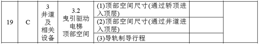 ②井道頂部最低部件與轎頂設備的最高部件之間的自由垂直距離不小于0.30 m,與導靴或者滾輪、鋼絲繩附件、垂直滑動門橫梁等的自由垂直距離不小于0.10 m;