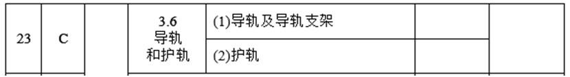 (8)將3.6項的檢驗項目及類別調整為:“導軌和護軌 C”,檢驗內容與要求調整為: