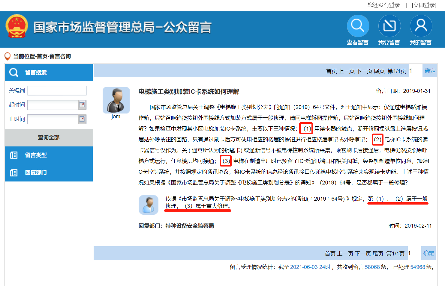 【回復(fù)】依據(jù)《市場(chǎng)監(jiān)管總局關(guān)于調(diào)整<電梯施工類別劃分表>的通知﹝2019﹞64號(hào)》規(guī)定,第(1)、(2)屬于一般修理,(3)屬于重大修理。