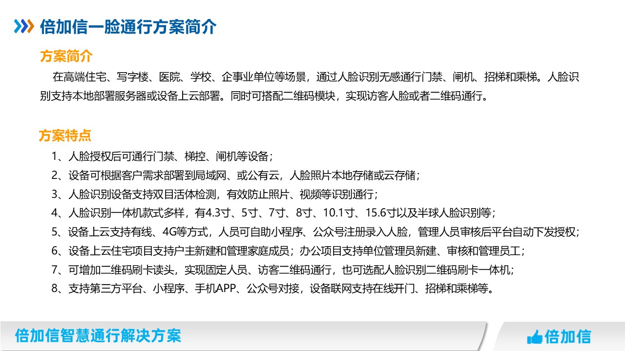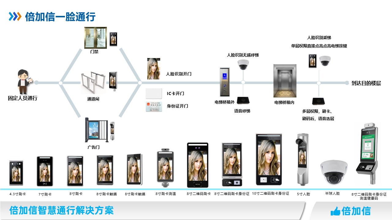 倍加信一臉通行解決方案 人臉識別授權一次,通行門禁、通道閘、梯控等系統